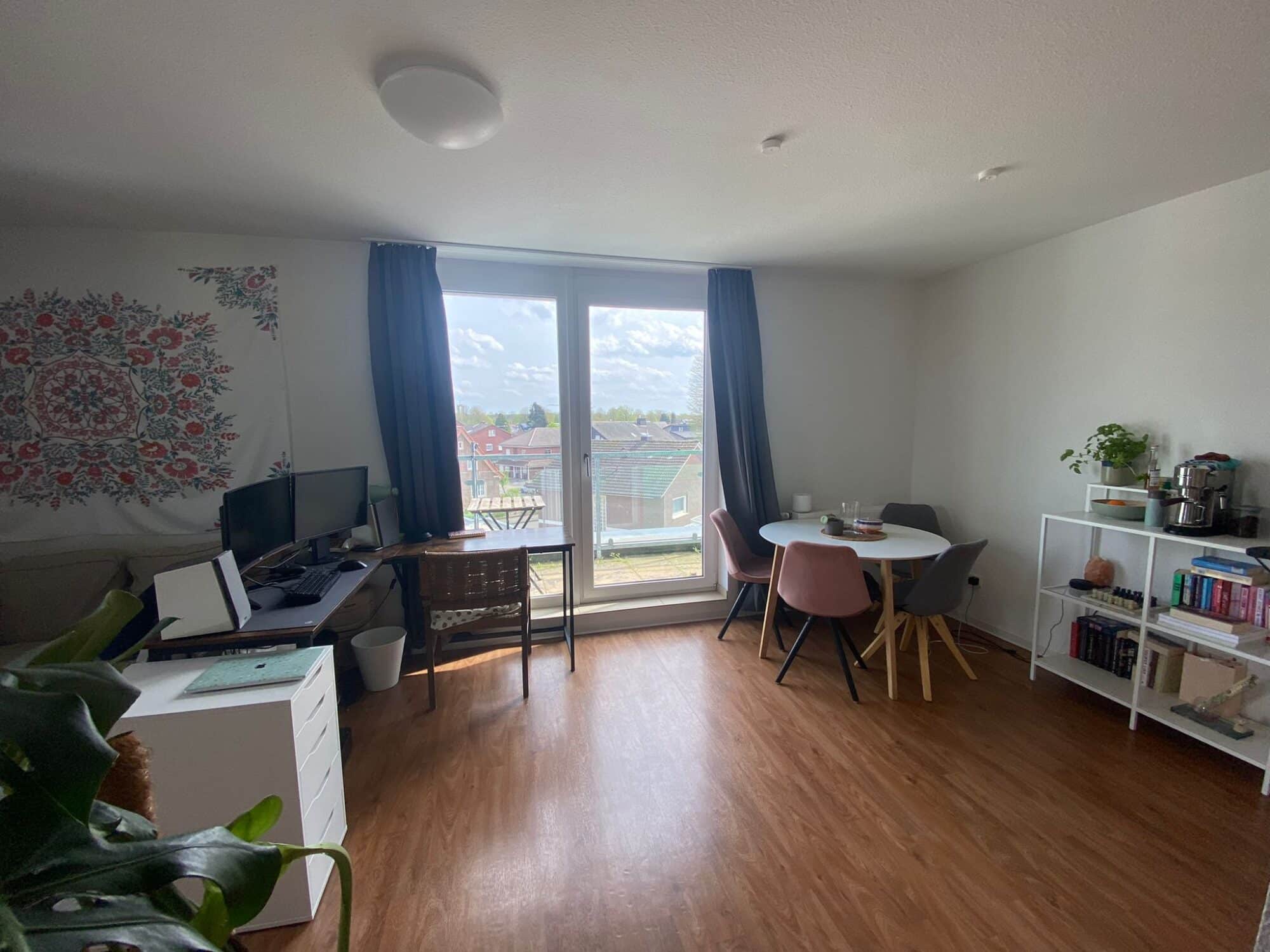 Marie, 21 Jahre alt, wohnt seit Beginn ihres Studiums in einer 4er WG in Lingen. Sie sieht die Vorteile einer WG darin, dass man seine Ruhe hat aber eben auch nicht immer alleine ist. Außerdem findet sie es gut, dass man durch die verschiedenen Räume, die Küche, das Bad und das eigene Zimmer, mehr Platz hat, als in einem 1-Zimmer Apartment.