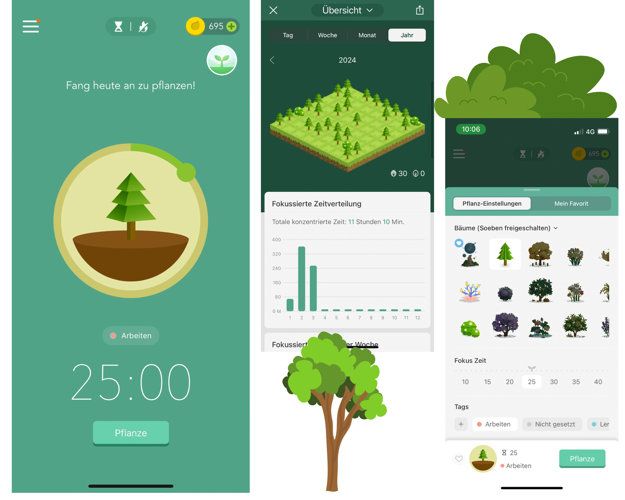 Ihr könnt aber auch Apps nutzen, um euch selbst herauszufordern. Eine schöne und sogar nachhaltige Idee ist Forest. Mit neuer Lernzeit wächst euch Bäumchen und schließlich ein ganzer Wald. Forest bietet auch die Möglichkeiten, sich mit Freunden zu vernetzten. Diese sehen dann eure Lernzeit und euren Wald.